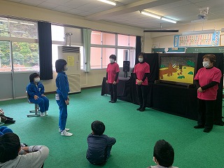 今日の業前はチロヌップの方々による、紙芝居の読み聞かせが行われました。