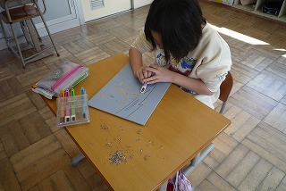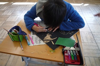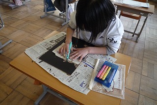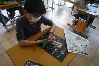 試し刷りをしながら、白黒の表し方を工夫していました。