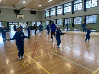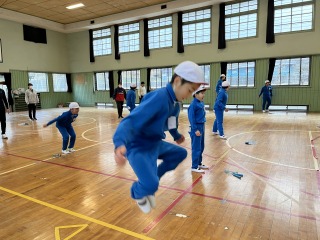 今日の体育集会は、南牧中学校の中島先生に来校していただき縄跳びを教えていただきました。