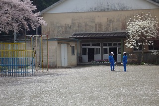 早くも、校庭の桜が散り始めました。