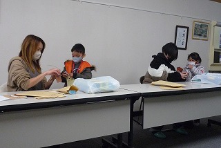 校長室で新入児保護者説明会をしました。説明会をしている間、新入児の2人は、1,2年生が一緒に校内を案内しました。