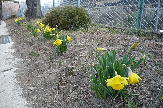 今日は、朝からとてもいい天気です。校庭のスイセンもきれいに咲いています。