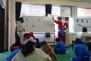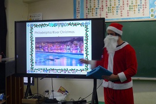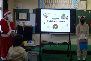 クリスマスにちなんで、ALTと一緒にゲームやお話しを聞きました。