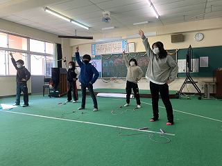 卒業を祝う会では、ダンスと縄跳びを披露しました。