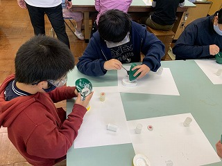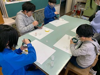 本の紹介の後は、三葉虫、アンモナイト、ビカリアのレプリカをつくりました。