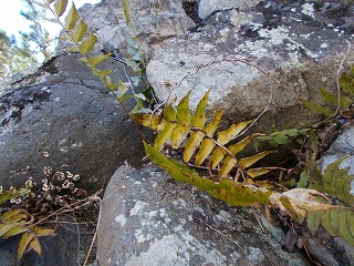 今朝は、気温が低くとても寒く感じました。しかし、日中はポカポカ陽気になりました。歩きながら石垣を眺めていると、その間にいろいろな植物が生えているのに気づきました。