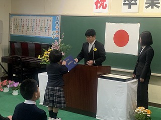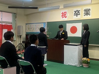 みどりの部屋で卒業式を行いました。長谷川村長様をはじめ、たくさんのご来賓の方、保護者様にお越しいただき、盛大に卒業式を祝うことができました。