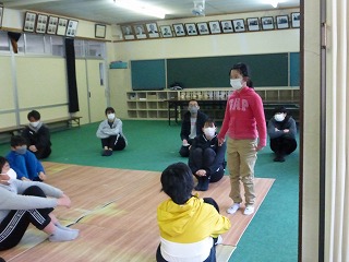 今日のふるさと朝礼では、以前、小学校にもお勤めになられたことのある地域の先生に講師となっていただき「青い目の人形」についてお話しいただきました。