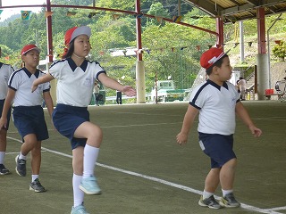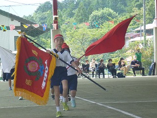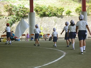 天候が心配されながらの運動会でした。また、千原ドームでは、はじめての運動会でした。児童会の進行で、閉会式がはじまりました。