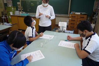 1時間目、6年生が「水溶液の性質」について調べていました。