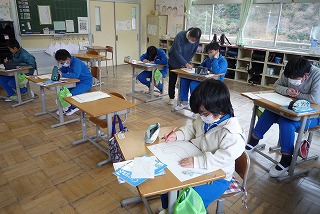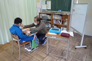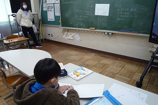 1時間目、1、2年生、6年生が算数の授業をしました。
