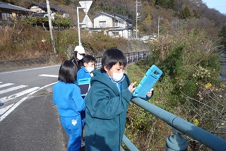 3時間目、4年生が社会科の学習で橋の果たす役割について、千原大橋に出かけ観察してきました。