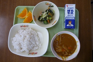 新学期、はじめての給食です。今日は、子供たちの大好きなカレーです。