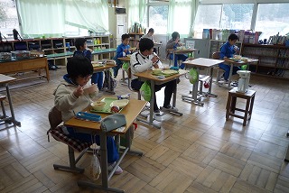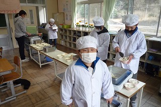 3学期もあとちょうど1ヶ月となりました。6年生は、小学校校舎で食べる給食もあとすこしとなりました。