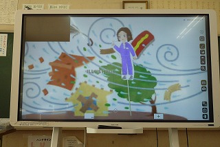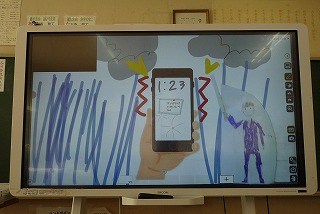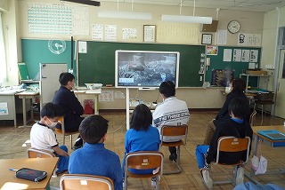 4年生が、総合的な学習の時間に取り組んでいる「南牧を水害から守ろう」のまとめとして、動画作成をしました。今日は、その試写会です。