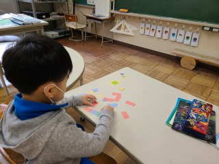 2年生は 2校時に直角三角形・正方形・長方形を隙間なく並べ