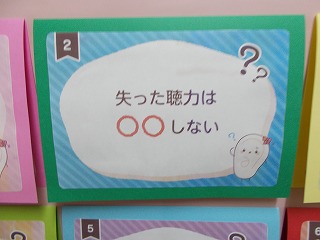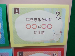 3月3日は、耳の日です。そこで、保健室前の廊下には、耳に関係するクイズコーナーが誕生しました。クイズに答えて、耳を大切にしたいですね。