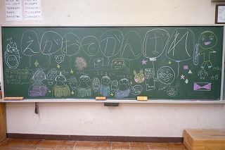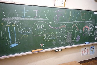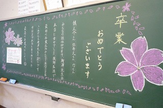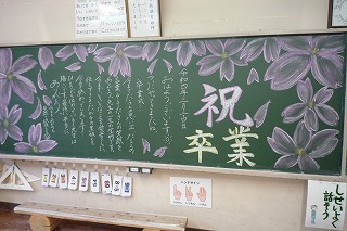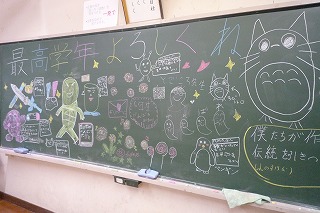 朝、教室をのぞくと下級生の教室には卒業生かっらのメッセージが黒板に書かれていました。