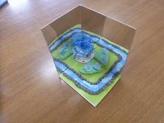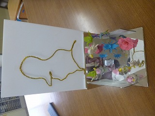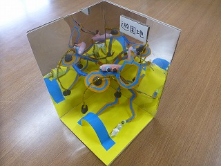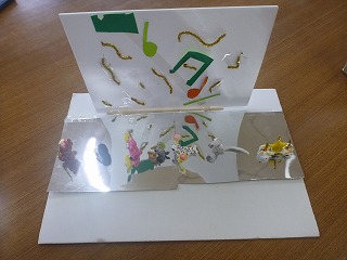 5年生の教室には、図工の時間につくったきれいな作品がありました。「くるくるミラクルステージ」です。