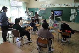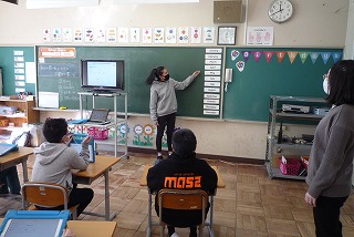 4時間目、6年生はイングリッシュルームで英語の授業です。今日は、月の呼び方を覚えました。