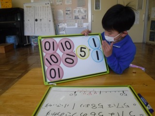 1年生では、「大きい数」の学習で、「57」という数について考えました。一つの数を、いろいろな見方で表す初めての学習です。