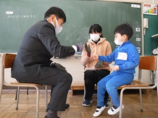 音楽の授業では、わらべ歌の学習で、「おちゃらか」を歌って遊びました。