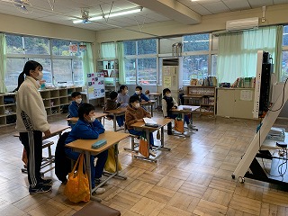 低学年と高学年が2教室にわかれ、話を聞きました。