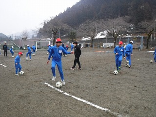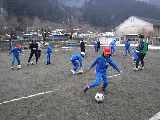 まずは、軽く準備運動を兼ねたボール蹴りの練習です。