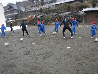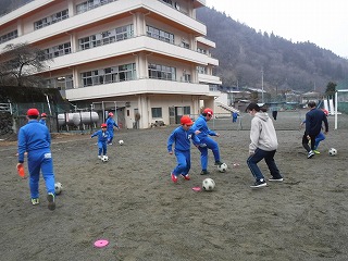 業前の体育集会では、サッカーをしました。