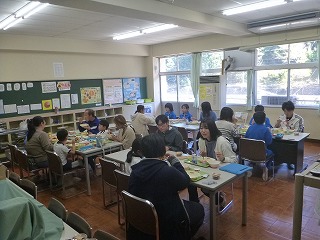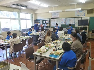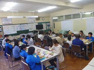 持久走記録会を終えた後は、保護者と一緒に給食を食べました。