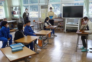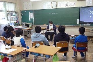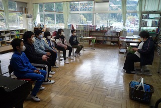 業前の時間に、高学年と低学年に分かれて読み聞かせを保護者ボランティアの方にしていただきました。