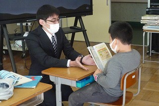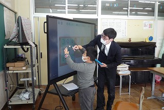 3時間目、1年生教室で教育実習生の研究授業が行われました。