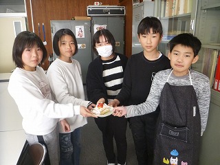 業間休みに高学年のみなさんが、ケーキを持ってきてくれました。
