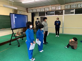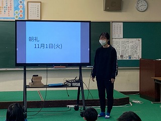 今日の朝礼は4年生の担任の先生のお話です。