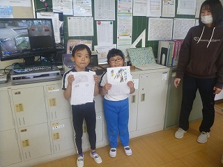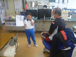 3時間目、1年生が職員室にやって来て、昨日の下仁田町校外学習の報告をしました。