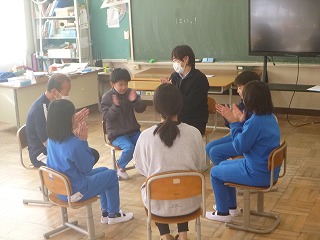 拍手の後は、友達に感謝、困りごと相談、賛成意見と心配意見、鬼のいないフルーツバスケットなどをしました。