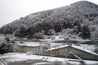 14日の朝、大雪の予想でしたが、幸いにもそれほどの雪にはなりませんでした。しかし、南牧小学校のまわりは、白くなっていました。