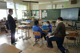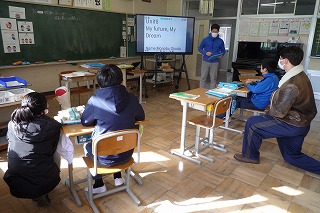 6時間目、6年生の英語授業に南牧中学校の校長先生が参観で訪れました。