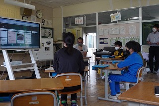 本時は、電子黒板を使って映像を見たり、対話したりして考えを深めました。