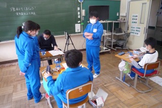 理科の実験の様子を観察しています。