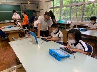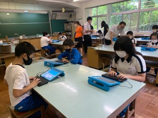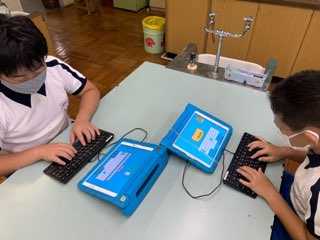 業前の時間、タイピング練習を全校で行いました。
