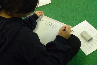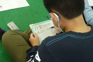 ホワイトボードに自分の考えを書きました。