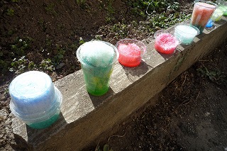 1年生のベランダにとてもきれいな色をしたカップが並んでいました。