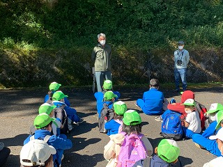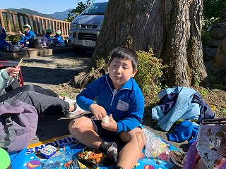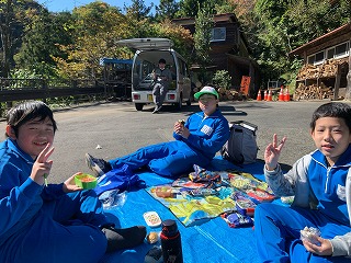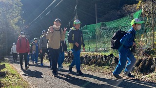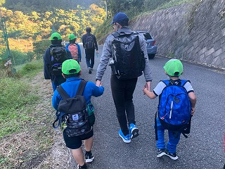 片道5キロを4年生以上は往復歩きます。低学年は行きは車で、帰りを一緒に歩きます。長い道のりですが、往復歩く中で、村の自然を満喫します。