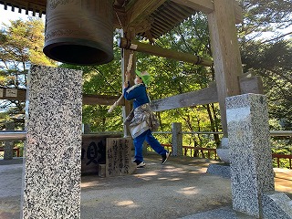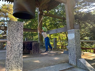 巣箱かけの後は、黒瀧山不動寺の鐘の前でお弁当を食べました。