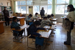 小学校の英語授業もあと1時間です。集中して、問題に取り組みました。