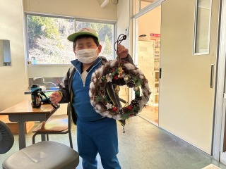 すてきなリースが出来て 満足のにっこり笑顔です。
