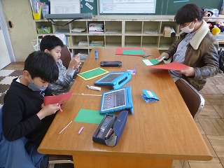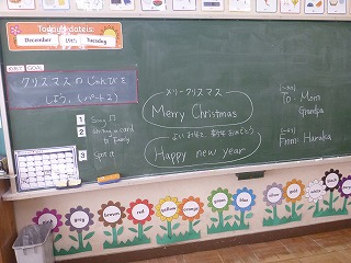高学年の英語の授業でクリスマスカード作りをしました。