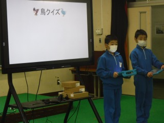 今日の業前は、図書放送委員会による「鳥クイズ」が行われました。