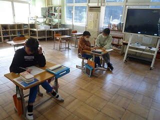 6年生は、各自のペースで漢字練習、作文をしていました。